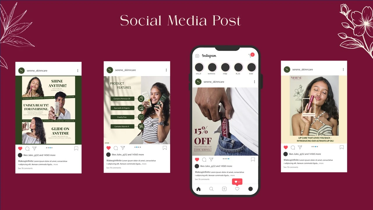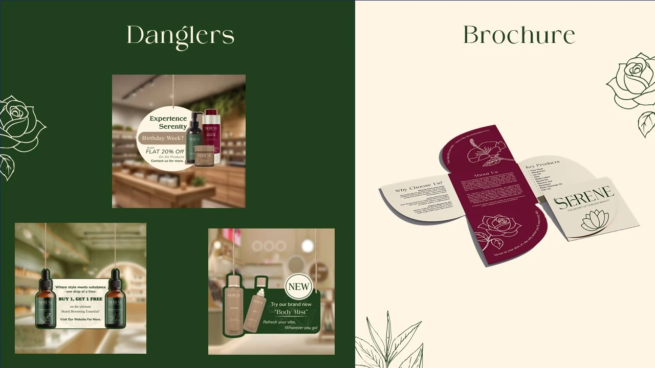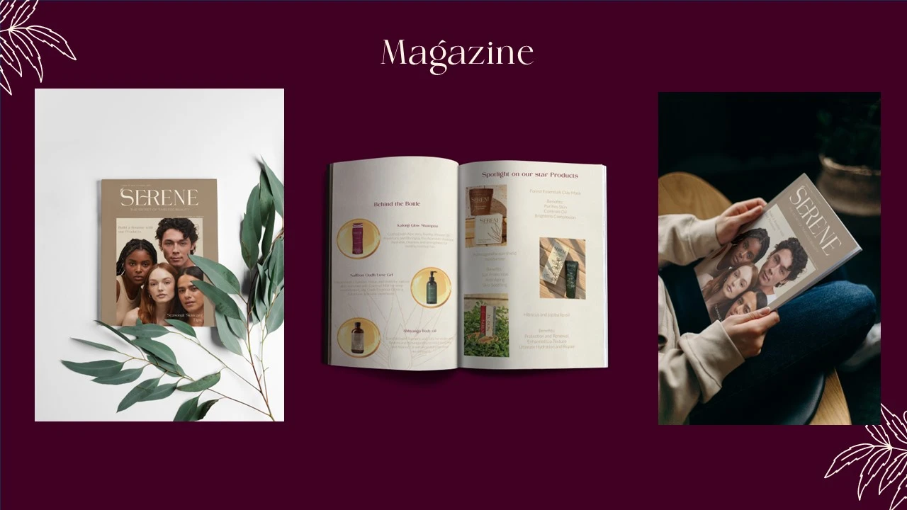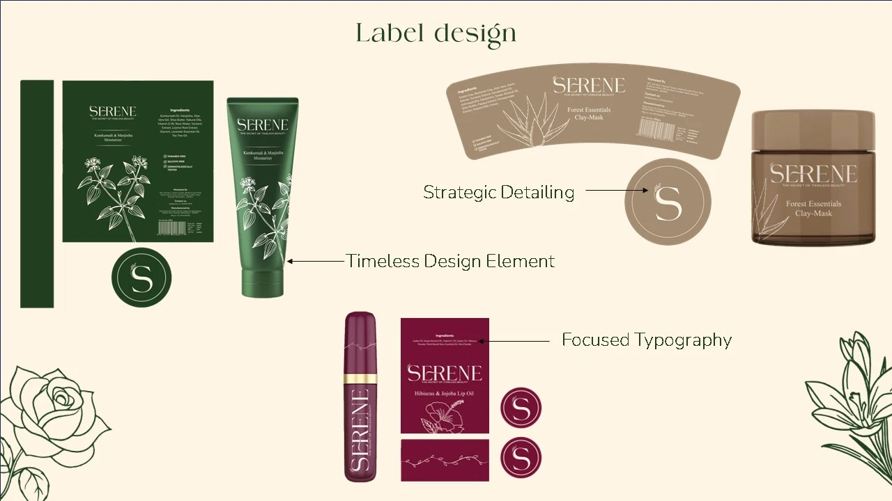 Serene blends traditional Ayurvedic ingredients with modern, elegant skincare design. The brand identity feels calm, pure, and premium, using earthy tones and minimalist layouts. Its visuals highlight natural elements like turmeric, neem, aloe, and sandalwood in a clean, contemporary style. Overall, Serene represents natural beauty reimagined with a soft, luxurious, and modern touch. Every detail reflects a soothing harmony between heritage and innovation.
